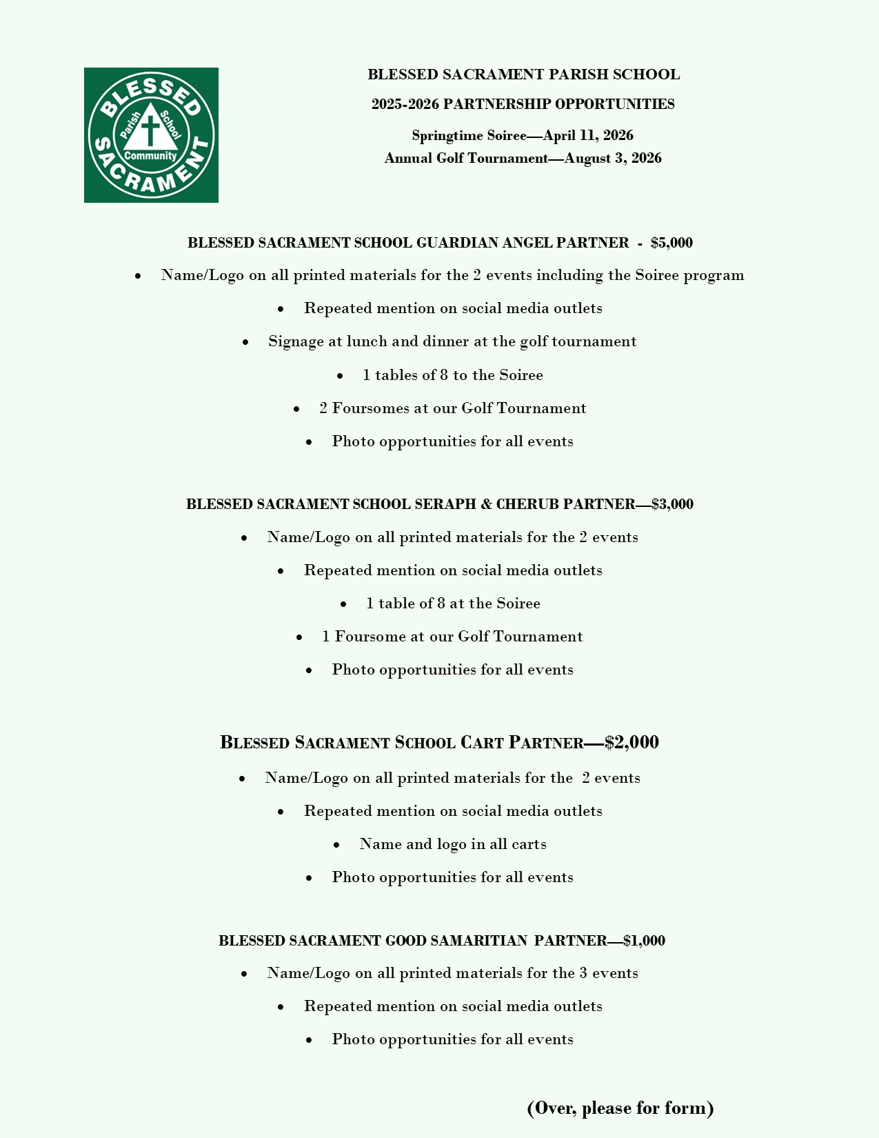 Blessed Sacrament School 2025-2026 Partnership Opportunities